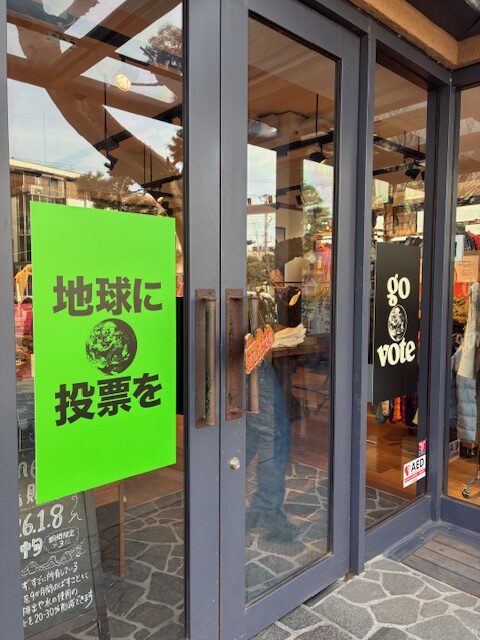 まだお店が開いていない時間帯ながら、偶然出会った20人ほどの参加者とストアスタッフの皆さんで、立場や年代を超えて今度の選挙のこと、環境のこと、暮らしのことをカジュアルに対話しました